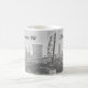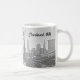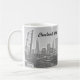 Impressão clássica negra e branca de Cleveland, linha do horizonte Ohio (vista dos rios). Foto original única mostra uma vista icônica de Cleveland, em uma caneca de café cerâmica resistente. Personalizar para adicionar nome ou remover texto. Também disponível em vários tamanhos e canecas de viagem.
