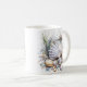 This coffee mug is shown in white with a lovely coastal shells watercolor print.