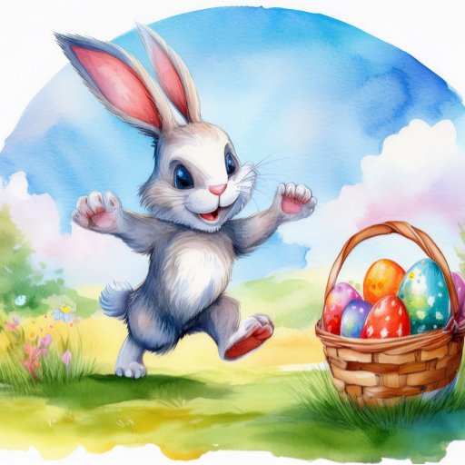 Coelhinho de Páscoa e Ovos Coloridos na Cesta