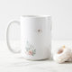Este adorável coelho branco em um vestido é uma doce ilustração de primavera com sua coroa de flores em sua cabeça.