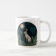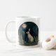 Um coelho feliz se senta no luar em flores e outras plantas com árvores altas no fundo.