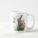Primavera vibe caneca com um coelho aquoso entre flores. Personalizável.