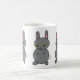 Você gosta de canecas bonitas? Você gosta de coelhos? Esta caneca tem três coelhos de cartoon de cinza vestindo copos cor-de-rosa, azul-turquesa e amarelo.