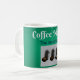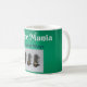 Uma caneca que desenhou com uma foto de três xícaras de café e as palavras - 'Café Mania' as melhores maneiras