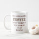 Mug de café humorístico com "café descafeinado só funciona se você jogá-lo na pessoas".
