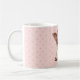 Raposa de bebê bonita com um arranjo floral na cabeça e uma borboleta colorida. O fundo é cor-de-rosa com pontos. Monograma opcional