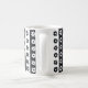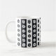 A caneca de café cerâmica é mostrada com um impressão de arte giro preto e branco. Personalize este item e altere o nome do exemplo para o seu. Imagem do stock