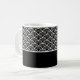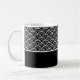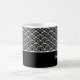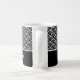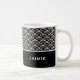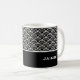 A caneca de café cerâmica é mostrada com um impressão de arte preto e branco. Personalize este item e altere o nome do exemplo para o seu.