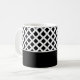 A caneca de café cerâmica é mostrada com um impressão de arte preto e branco. Personalize este item e altere o nome do exemplo para o seu.