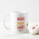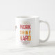 "Fiquem motivados com cada gole da nossa caneca de café 'Duro de Trabalho Brilhante'. Feito de cerâmica de alta qualidade, esta caneca foi projetada para manter suas bebidas favoritas à temperatura perfeita enquanto você enfrenta suas tarefas diárias. O slogan ousado, exibido de forma destacada em ambos os lados, serve como um lembrete constante para colocar o esforço e deixar suas conquistas brilharem. Quer você comece sua manhã ou faça uma pausa muito necessária, esta caneca é sua busca de inspiração e estilo."