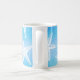 Uma bela lavagem a aquarela em turquesa com estrelas brancas acentua esta caneca de café única.