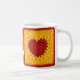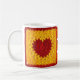 Uma caneca de café com uma foto do meu quadrado original do coração crochetado.