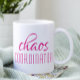 Chaos Coordenator Pink Script Coffee Mug é um design simples de "coordenador do caos" em um texto tipográfico cor-de-rosa divertido. Perfeito para aquela mãe ocupada, pai, treinador, professor, gerente de time esportivo ou chefe de trabalho. Elaborado por ©Evco Studio www.zazzle.com/store/evcostudio