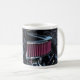 Caneca de café com uma foto próxima de uma entrada de ar/filtro de ar do cromo de rico de um motor de haste quente. Procurando mais impressões ou produtos? Sinta-se livre para visitar minha loja: http://www.zazzle.com/timelessmomentsphtgy Esta foto foi tirada por Jennifer White com Fotografia Moments Eterno. Todas as imagens são protegidas por copyright © Moments Eterno Photoographic.