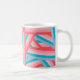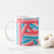 Esta caneca tem um design striped de grupos de cinco listras que se cruzam entre si através do design azul, rosa, pêssego e coral. Se você gosta do design, mas prefere cores diferentes, me mande mensagem.
