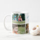 Caneca de café para a avó com uma colagem da foto onde você possa adicionar cinco fotos dos miúdos grandes. Adicione o nome da avó em letras azuis acima de um galho dos miosótis.