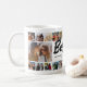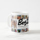 Uma caneca de café dos melhores amigos modernos, com a palavra "besties" em uma letra preta, uma citação de amizade, seus nomes, e um modelo de colagem de 24 fotos, para que você personalize suas fotos do BFF.