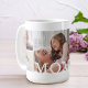 Mostre a sua mãe (mãe) seu amor com nossa colagem de fotos MOM personalizada e caneca monográfica. Nosso design apresenta um design de enrolamento com um design de colagem de sete fotos. "MOM" exibido em branco sobre a foto. Esta caneca especial é o presente perfeito para enviar para sua mãe para dia de as mães, aniversário, Natal, aniversários ou um presente especial para dizer o quanto você os ama! Personalizar com monograma de mães.
