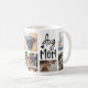 Crie um doce presente personalizado para uma mãe de cão adoradora com esta caneca de colagem fofa fofa fofa. Design apresenta "mãe de cão" em tipografia escrita a preto com 7 fotos de seus bebês e um sotaque de impressão digital. Personalize com o nome do cão e/ou uma mensagem pessoal em letras brancas a preto para completar o design.
