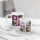 Crie um doce presente personalizado para uma mãe de cão adoradora com esta caneca de colagem fofa fofa fofa. A design apresenta "mãe de cão" em tipografia escrita à mão roxa de ameixa com 7 fotos dos seus bebês e um sotaque de impressão em páginas. Personalize com o nome do cão e/ou uma mensagem pessoal em letras brancas em roxo para completar o design.