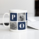 Personalize esta fofa design de caneca moderna para celebrar o seu avô favorito neste Dia de os pais, Natal ou aniversário! Design apresenta quadrados alternados de fotos e blocos azuis de marinho profundo que soletram "POPPY" em caracteres serif modernos. Adicione cinco das suas fotos quadradas favoritas (perfeito para o Instagram!) usando os modelos fornecidos.