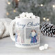Personalize este café festivo de Natal ou caneca de cacau quente com três (3) fotos e texto personalizado. O design padrão apresenta "Feliz Natal" em um roteiro com três fotos de crianças e uma mensagem personalizada para a vovó. Inclui esboços em flocos de neve e texto azul marinho que pode ser personalizado para uma cor diferente.