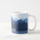 Mug de café COLORADO com silhuetas de montanha em tons de azul, com texto personalizável. Para nenhum texto, exclua o texto de amostra e deixe o vazio.