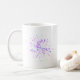 This colorful abstract neon splash coffee mug features a vibrant modern art design on a dark background.