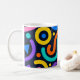 A lively mug design full of bold abstract shapes and vibrant curved lines inspired by modern pop art. The rich mix of yellow, teal, pink, and red creates a joyful rhythm — perfect for coffee lovers who crave creativity and color every morning.
