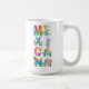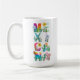 Letras negretas em aquarela que dizem "Mexicana". As letras formam a palavra Mexicana. Cada letra tem flores pequenas, verde e nopales. A maioria das letras tem um bonito gradiente bonito de cores brilhantes. Melhor caneca de café para aniversários e presentes de graduação.
