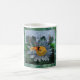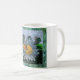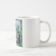 Esta caneca de café comemora o primavera com uma imagem de uma abelha e de uma flor.