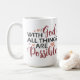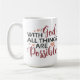 caneca desenhada com as palavras "Com Deus Todas as Coisas são Possíveis" na frente.