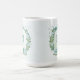 caneca de café botânica com flores azuis românticas e algumas folhas verdes.