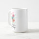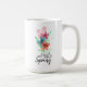 Caneca de café da primavera fofa apresentando flores e folhas de aquarela laranja, rosa e azul. "Olá Primavera" está em dois tipos de tipografia.