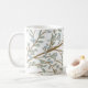 caneca de café com folhas e galhos de árvores