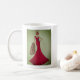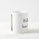 Uma caneca de café cerâmica branca que caracteriza "uma ilustração lindo da forma de Hollywood velho".
