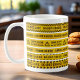 Caneca de café com listras amarelas de cena de cri