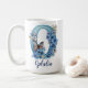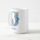 Uma caneca de café personalizada em tons de azul com borboleta coordenada, apresentando o monograma da letra "O". Personalize facilmente com seu nome ou crie um presente único para seus entes queridos. Espaço suficiente para adicionar uma citação ou mensagem adicional ou até mesmo um fundo. Esta caneca também vem em diferentes estilos e combinações de cores. Navegue pela coleção para ver exemplos deste tipo de fonte nos diferentes estilos e tamanhos de xícara.