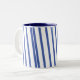 A alegre caneca azul e branca listrada é perfeita para mergulhar na praia, ou num piquenique!