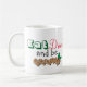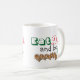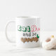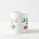 Slogan "Coma, Beba e seja feliz" em canecas de Natal com biscoitos de gengibre em forma de coração e decoração oca.