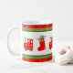 Uma caneca de Natal criativa, com um trem de brinquedo e estocagem de Natal. Para personalizar o nome de adição.