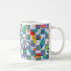 Dale un toque de color y elegancia a tus momentos de café o té con esta hermosa taza decorada con un diseño moderno. Su fondo de cuadrados en tonos azules aporta profundidad y armonía, mientras que los motivos de hojas y flores superpuestos en diferentes colores crean una composición única y llamativa.