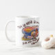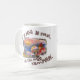 Um lado da caneca de café uma imagem pintada por Geórgia Pistolis com um slogan grego; Tradução inglesa no outro lado da caneca.