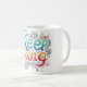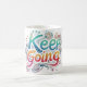 Uma vibrante e inspiradora design de caneca do Coff com a frase "Continue Indo" cercada por um design colorido e abstrato. A tipografia ousada e as cores lúdicas encorajam uma mentalidade positiva e motivada.