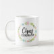 Uma caneca engraçada para mulheres profissionais ou mães. O texto diz "Coordenador do Caos" e há uma camada floral de aquarela em volta do texto. Dons de excelente para mães ou professores! Design feminina e humorística.