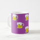Uma xícara de cerveja gelada, cheia de bolhas efervescentes, senta-se de forma proeminente contra um pano de fundo púrpura cativante, evocando uma sensação de convialidade e relaxamento numa rica atmosfera de calor e luxo.