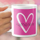 Esta caneca de café na moda apresenta um nome sobre um coração branco giro em um fundo rosa quente. MAIS cores e itens correspondentes em nossa coleção.