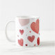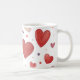 Esta caneca clássica apresenta um encantador design cardíaco em matizes vermelhos suaves, adicionando calor e estilo às suas bebidas favoritas. Perfeito para momentos confortáveis.