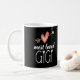 desenho de caneca de café Gigi com uma fonte de coração com um conjunto de coração e flecha rosa em um fundo preto. Presente perfeito para o dia dos avós ou dia das mães. Visite nossa loja para ver esta caneca em uma grande variedade de nomes de avós.