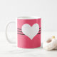 Doce e encantadora mug cardíaca moderna apresentando um fundo magenta e um coração fofo e uma borda listrada. Esta caneca gira e gira é perfeita para gostar da sua bebida quente favorita! Personalize com o texto de sua escolha. Clique em "Personalizar" para encontrar opções adicionais de personalização.
